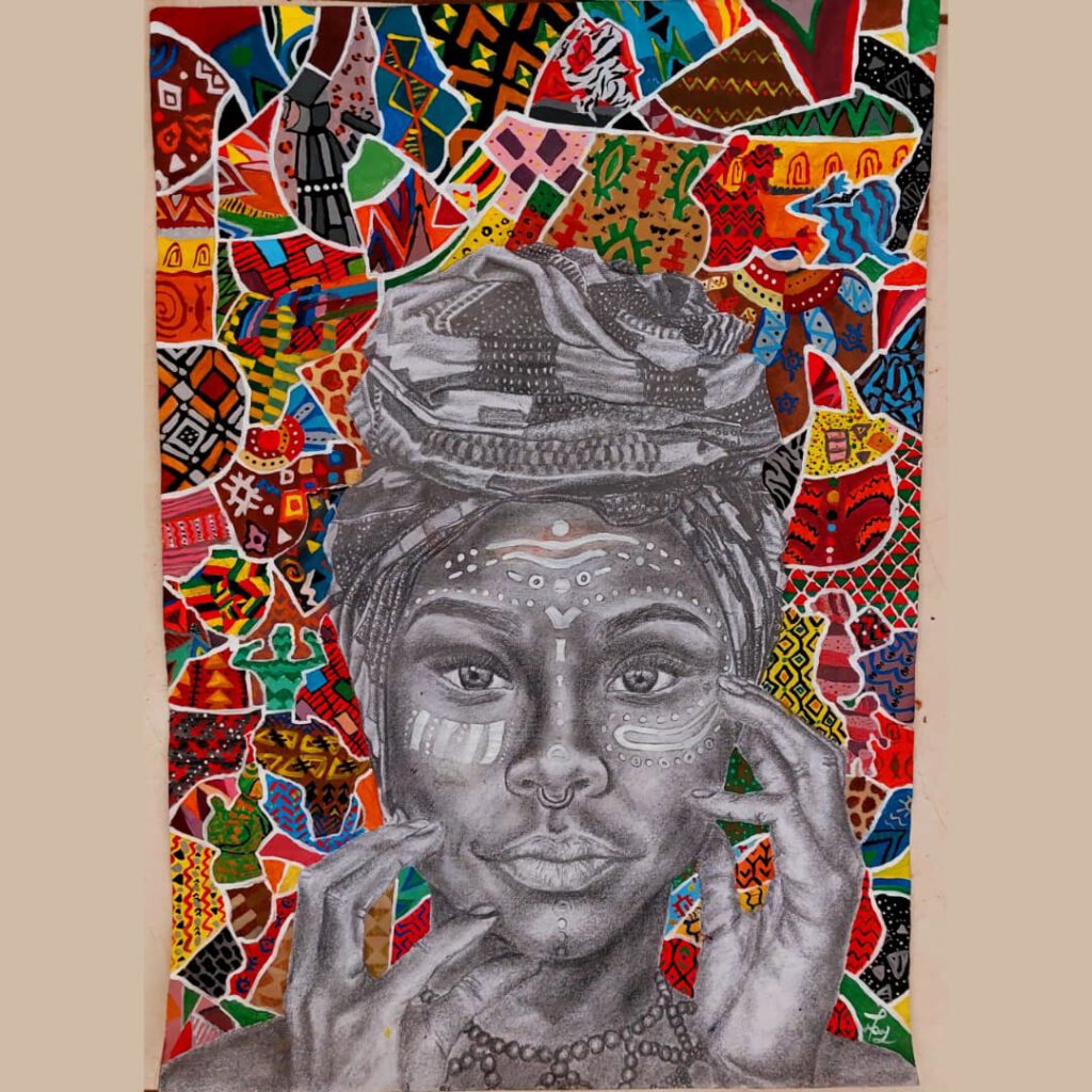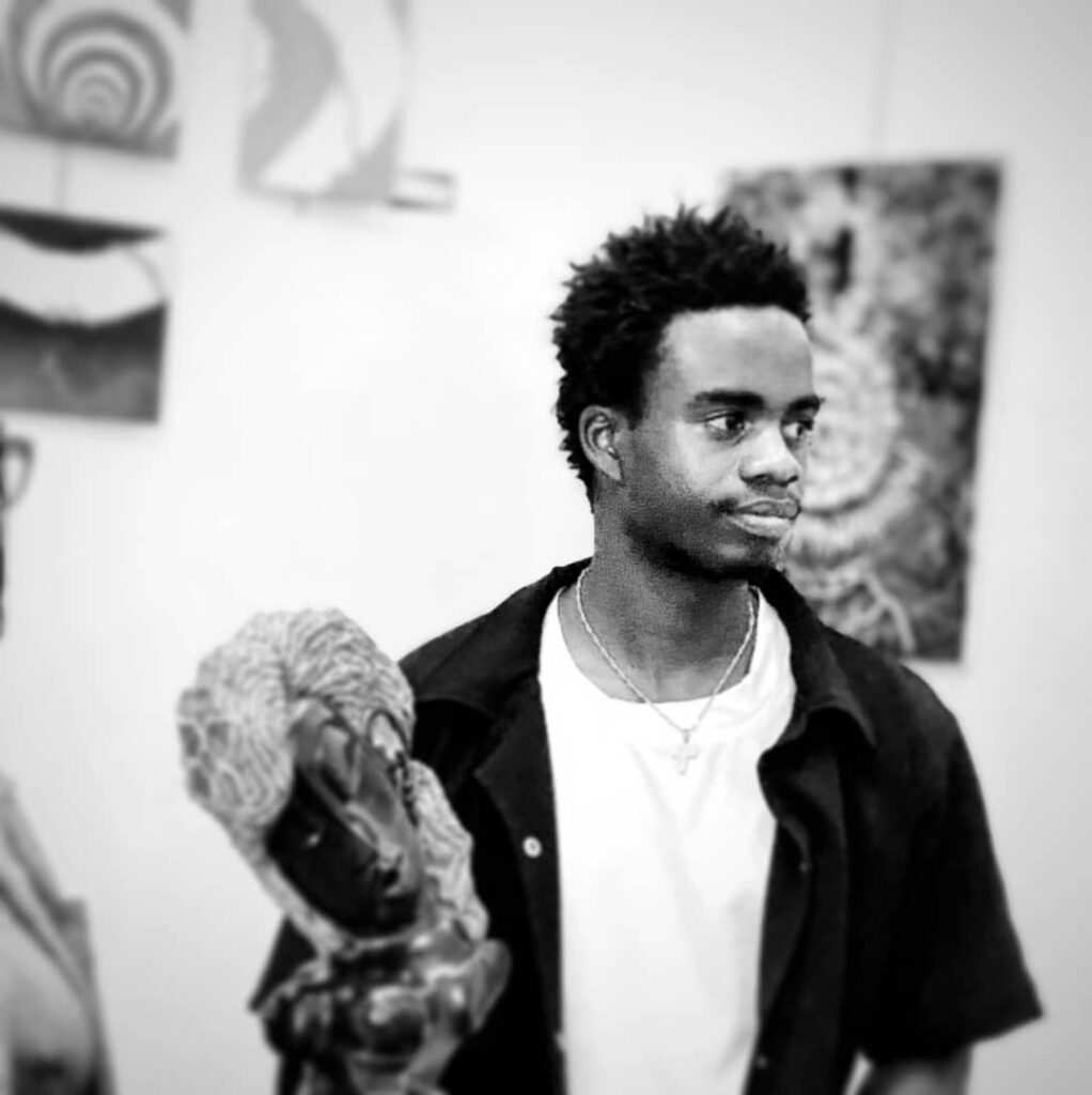 Tendai Changadeya is a Zimbabwean contemporary visual artist working across painting, collage, and stone sculpture. Born in Bulawayo, raised in Harare, and currently based in Mutare, his practice explores the tension between the material and the spiritual. He holds a Bachelor of Fine Art (Honours) degree from Chinhoyi University of Technology. Grounded in the concept of “transient eternity,” inspired by Second Epistle to the Corinthians 4:18, his work reflects on the relationship between the seen and unseen, the physical and the eternal. Through expressive, often fragmented figures and layered compositions, Changadeya examines themes of identity, spiritual tension, and transformation.